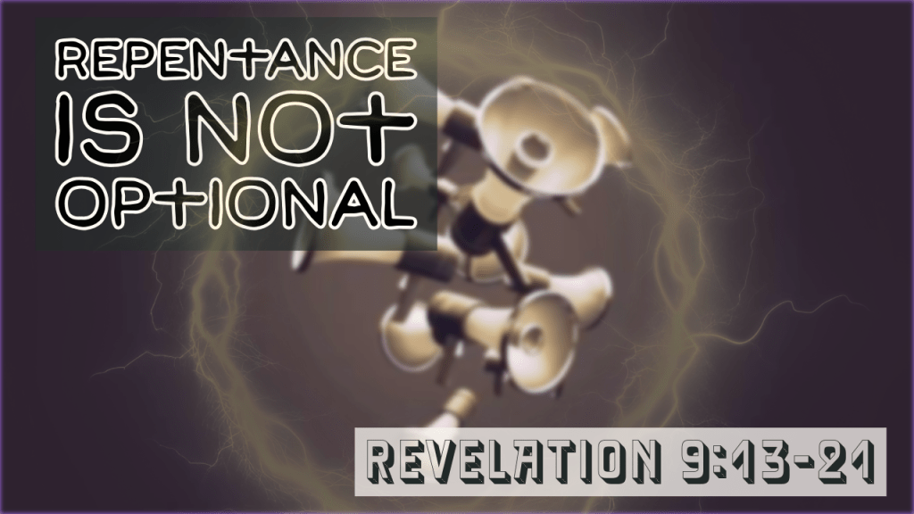 13 Then the sixth angel blew his trumpet, and I heard a voice from the four horns of the golden altar before God, 14 saying to the sixth angel who had the trumpet, “Release the four angels who are bound at the great river Euphrates.” 15 So the four angels, who had been prepared for the hour, the day, the month, and the year, were released to kill a third of mankind. 16 The number of mounted troops was twice ten thousand times ten thousand; I heard their number. 17 And this is how I saw the horses in my vision and those who rode them: they wore breastplates the color of fire and of sapphire and of sulfur, and the heads of the horses were like lions’ heads, and fire and smoke and sulfur came out of their mouths. 18 By these three plagues a third of mankind was killed, by the fire and smoke and sulfur coming out of their mouths. 19 For the power of the horses is in their mouths and in their tails, for their tails are like serpents with heads, and by means of them they wound. 20 The rest of mankind, who were not killed by these plagues, did not repent of the works of their hands nor give up worshiping demons and idols of gold and silver and bronze and stone and wood, which cannot see or hear or walk, 21 nor did they repent of their murders or their sorceries or their sexual immorality or their thefts.